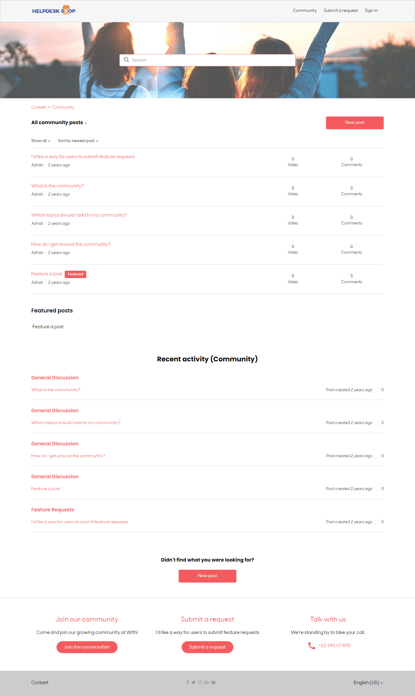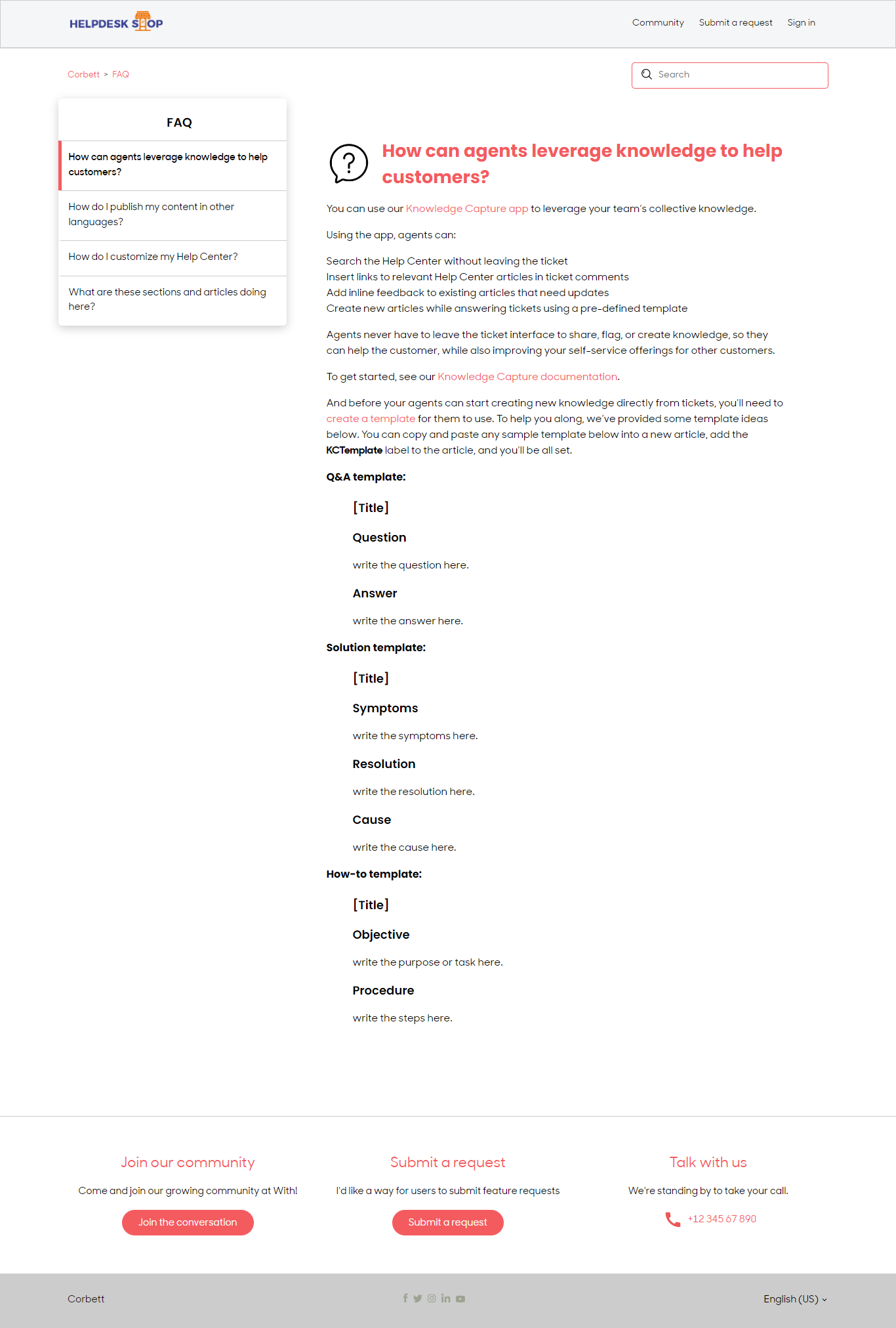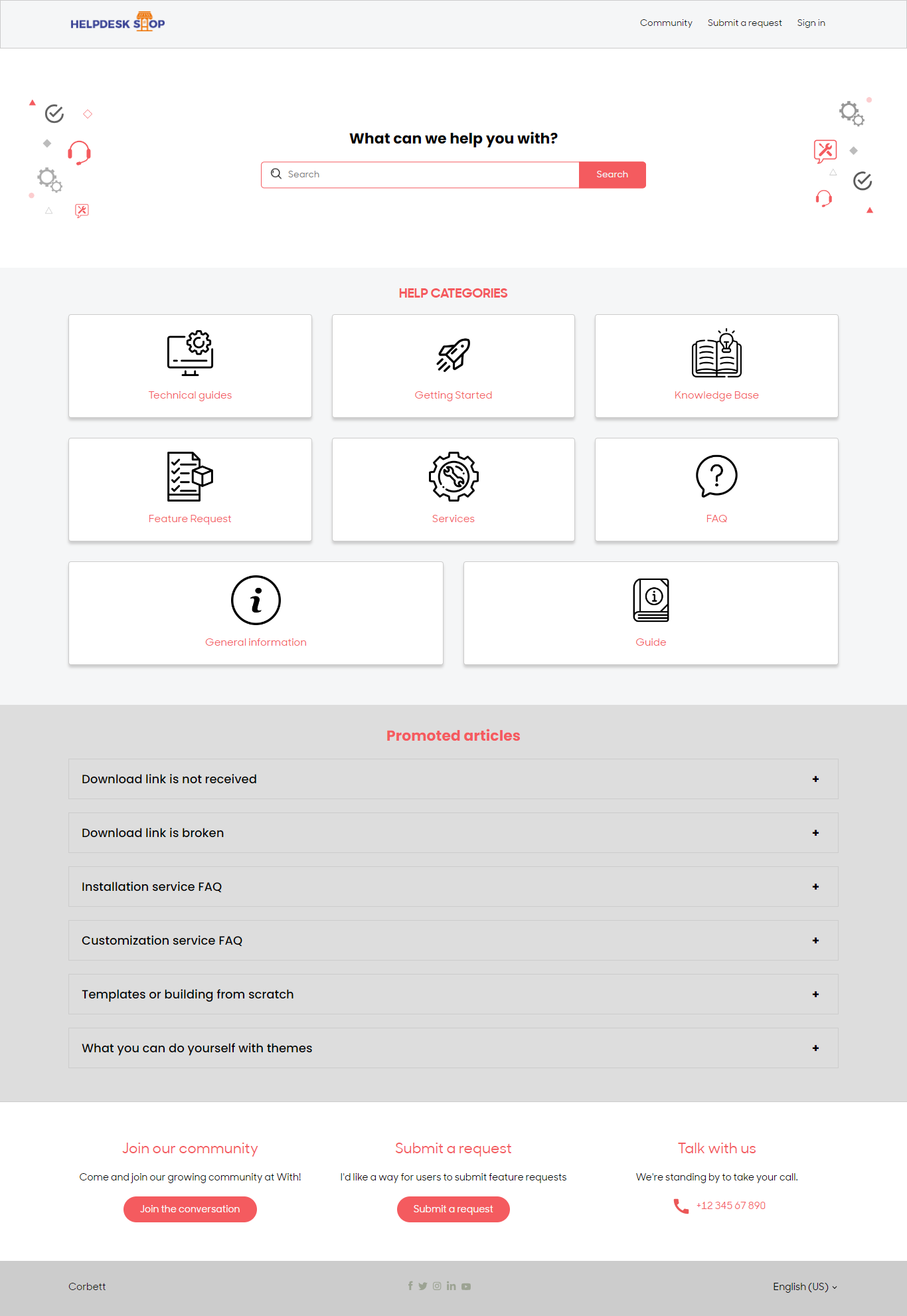 Corbett is a fully responsive multipurpose Zendesk Help Center theme. The theme is a perfect balance between style and performance. All the elements of the help center are arranged in a way that keeps navigation super easy. The theme comes with an attractive black background at the back of a floating search box at the center of it all. It has a stunning full-screen layout with beautiful blocks and interactive design elements, which generate an airy and elegant feeling to the help center.