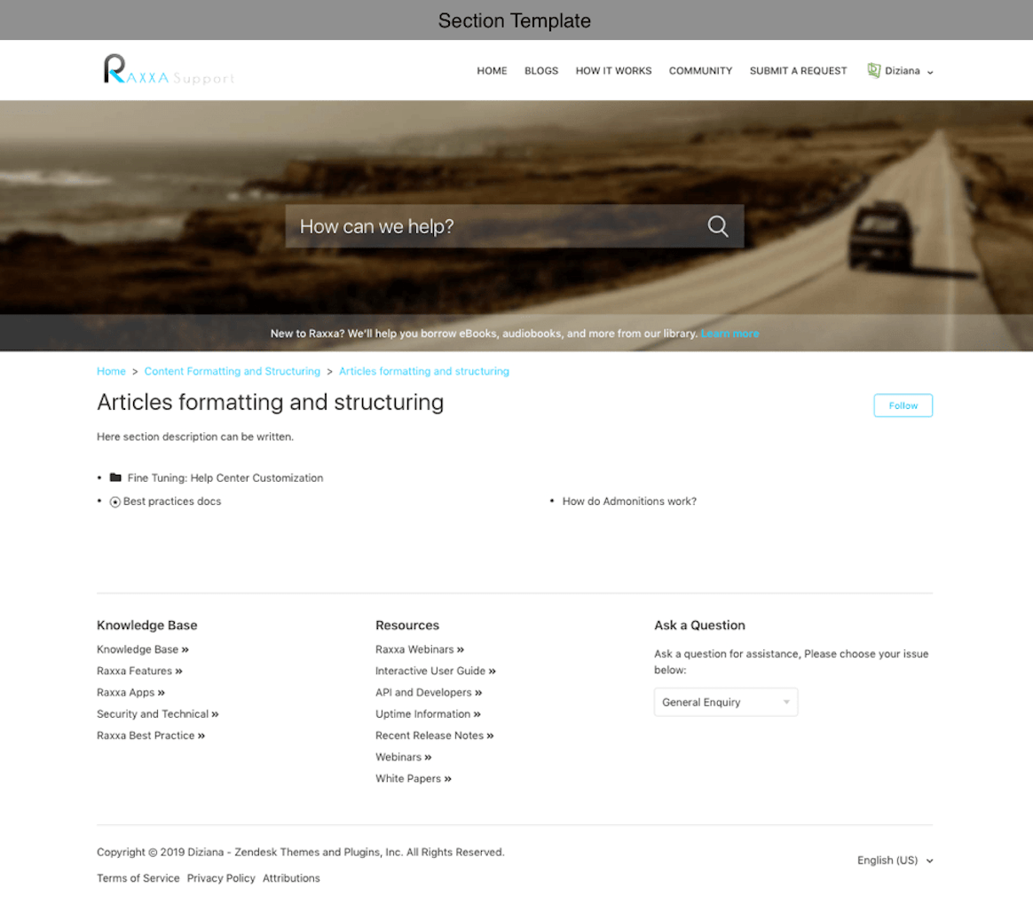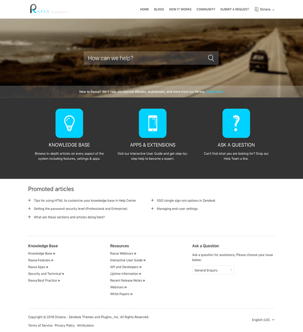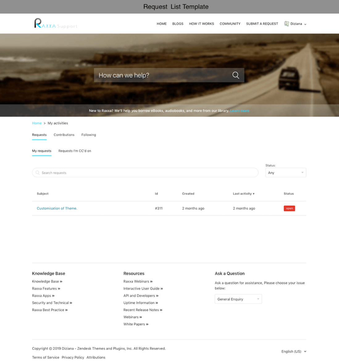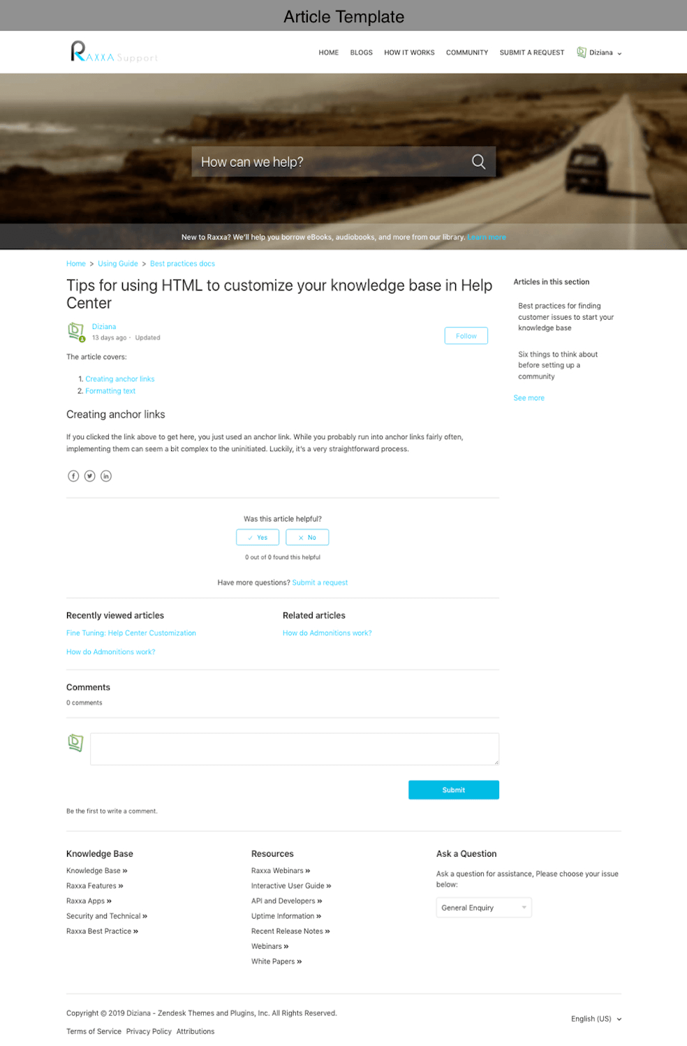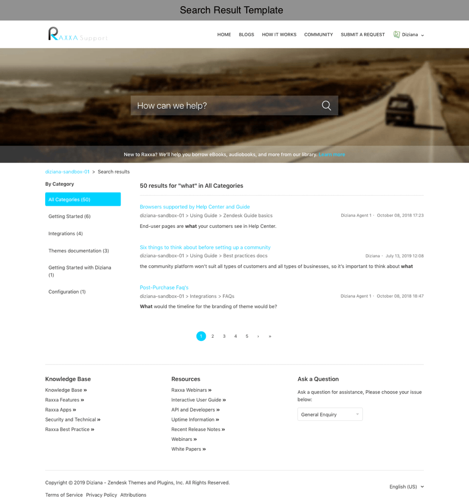 Diziana Raxxa is a fully responsive Zendesk® Guide Help Center Theme (templates); an elegant one.