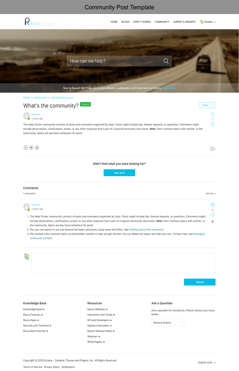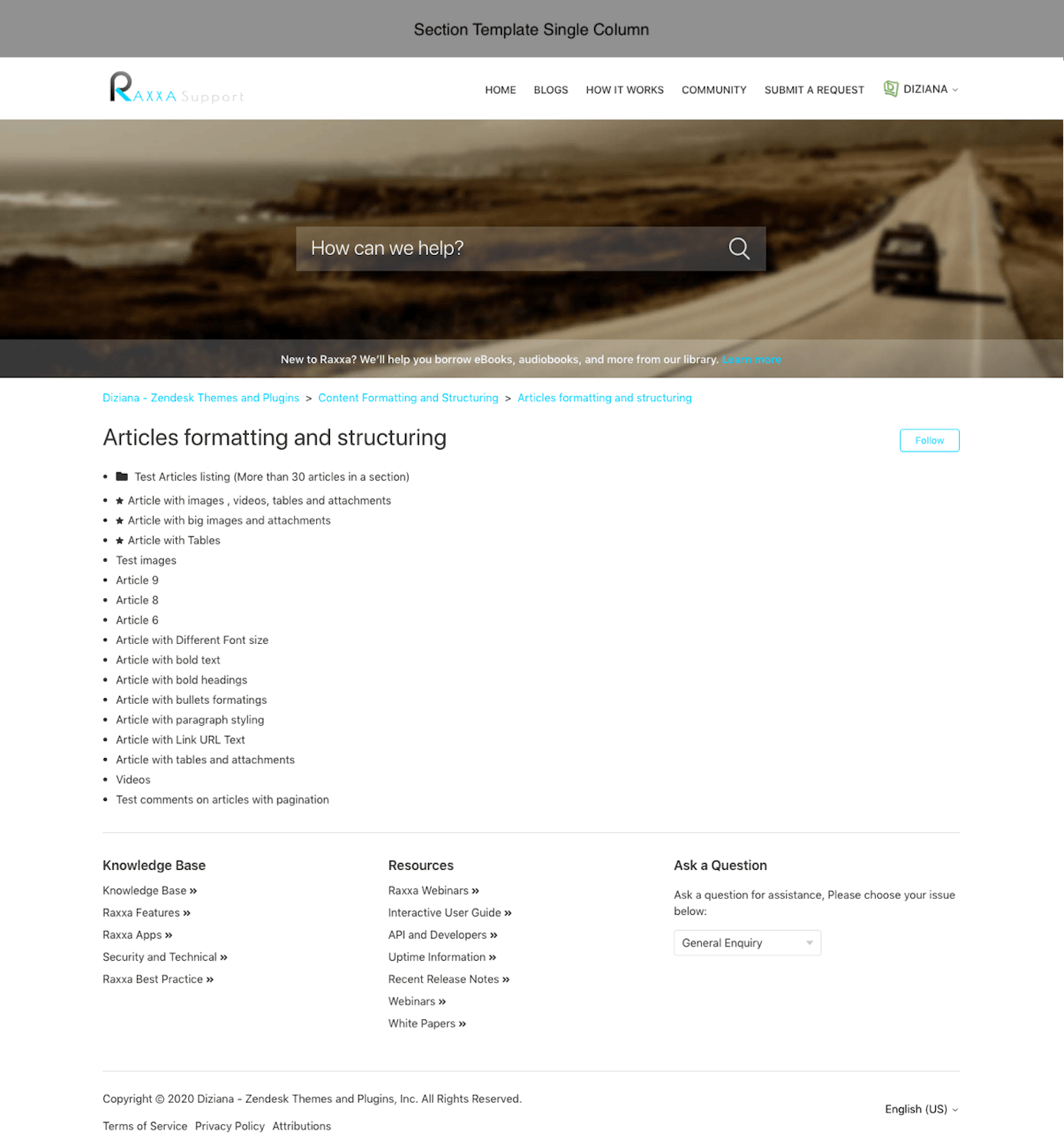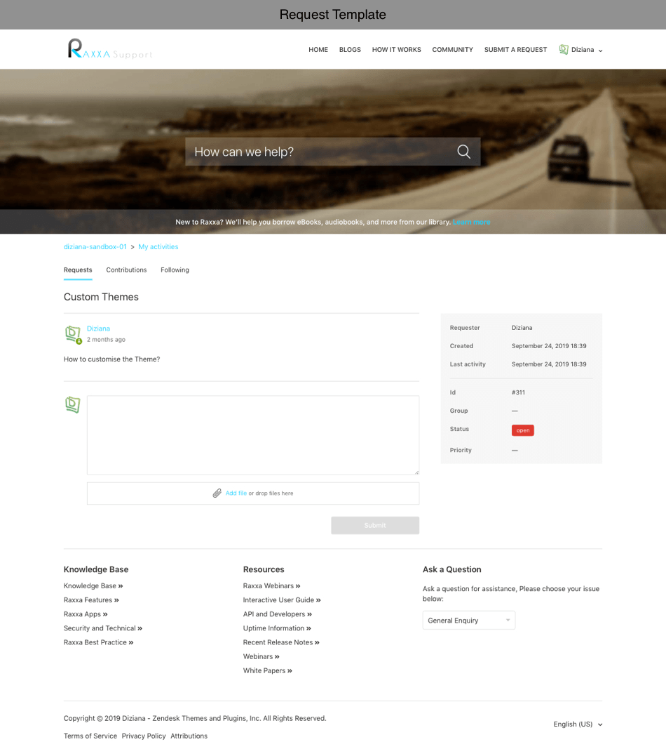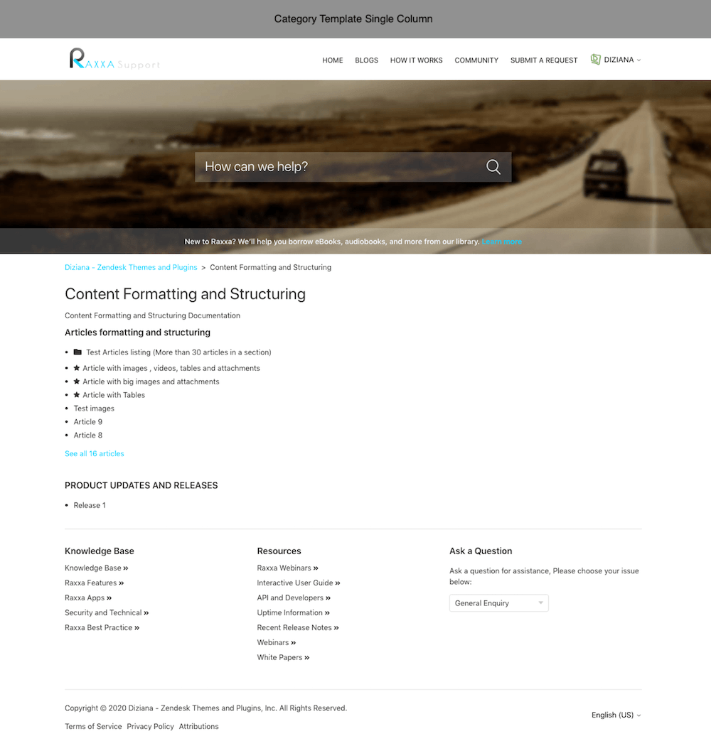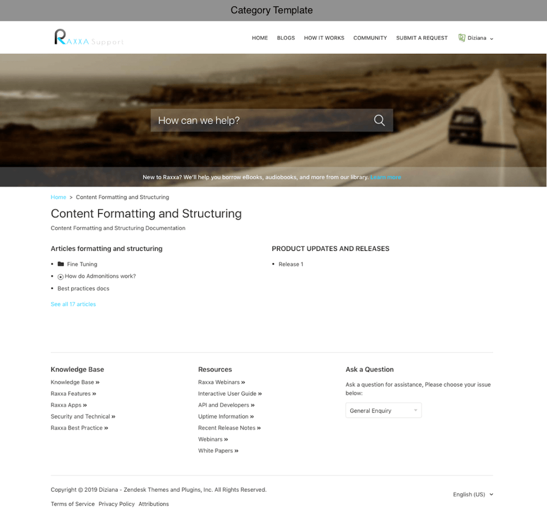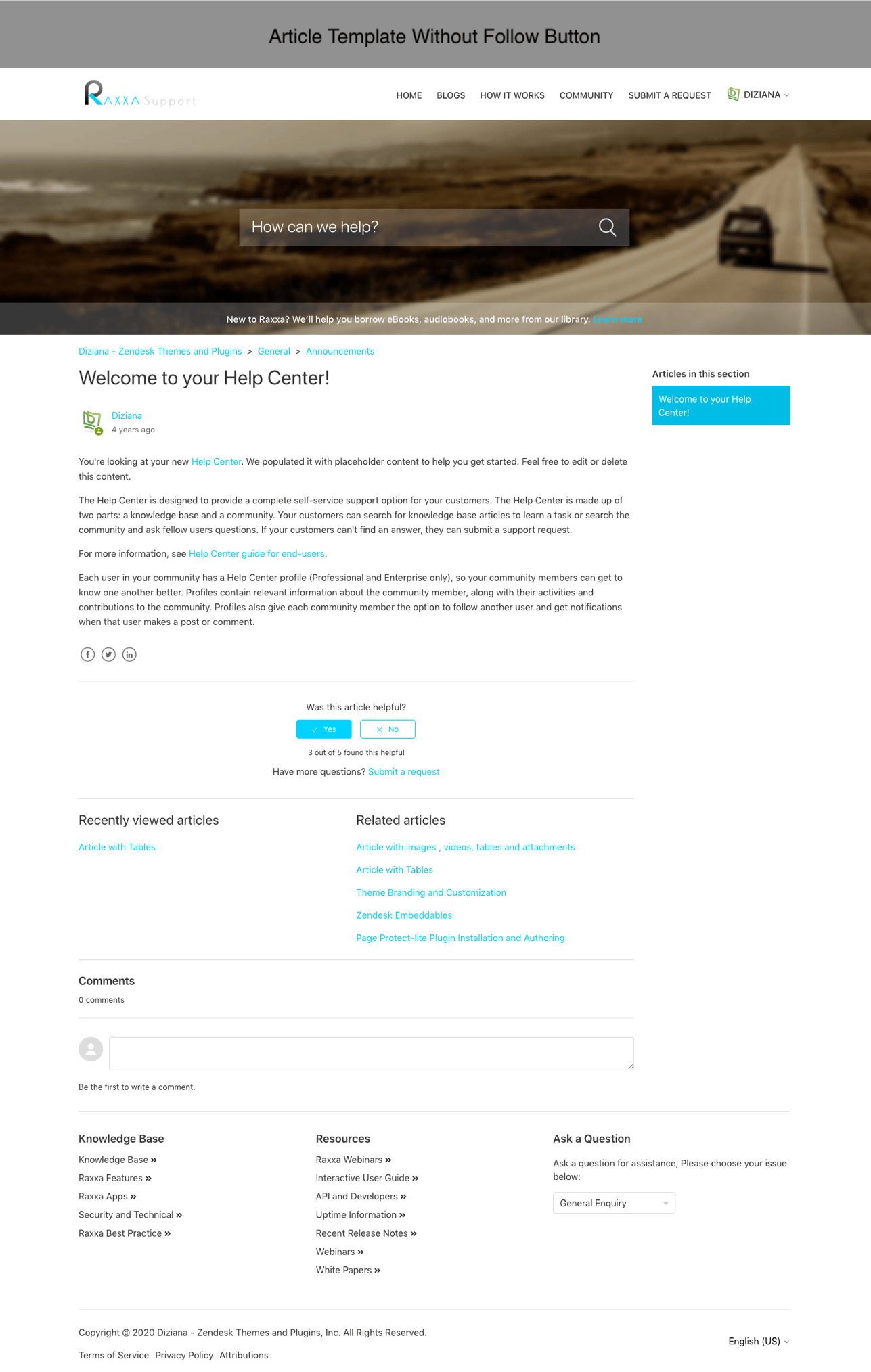 Diziana Raxxa is a fully responsive Zendesk® Guide Help Center Theme (templates); an elegant one.