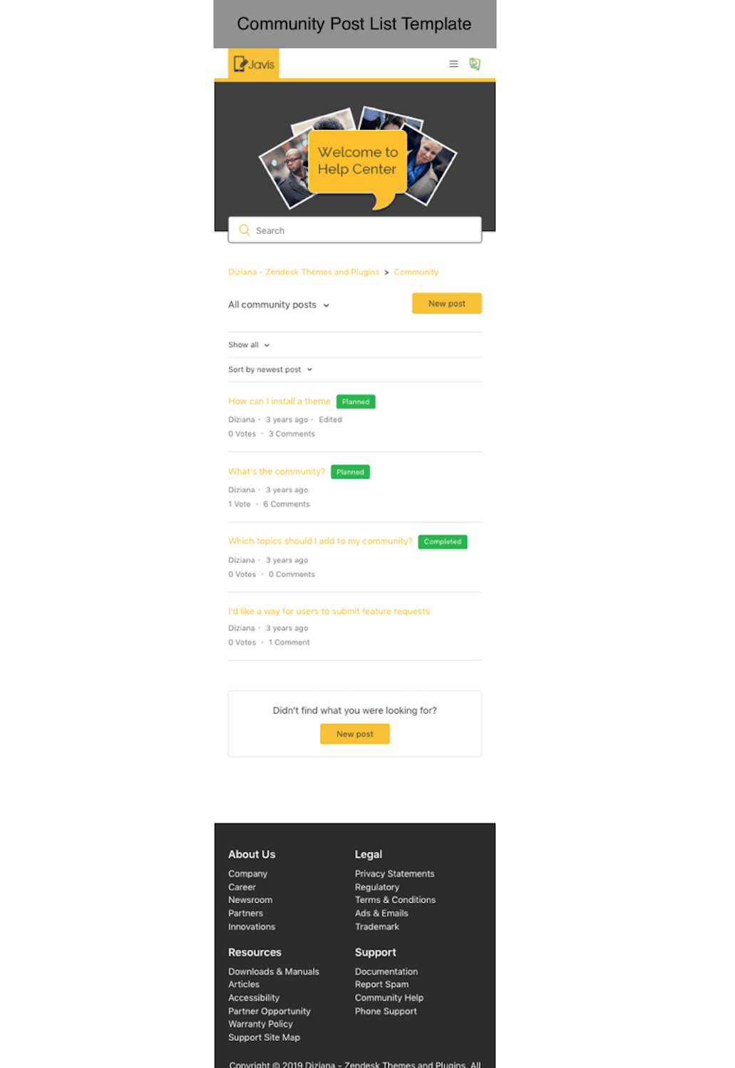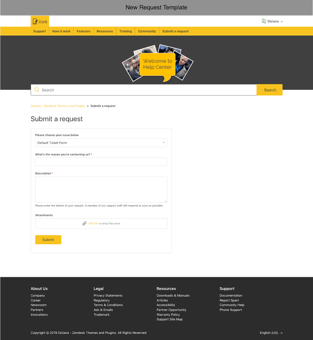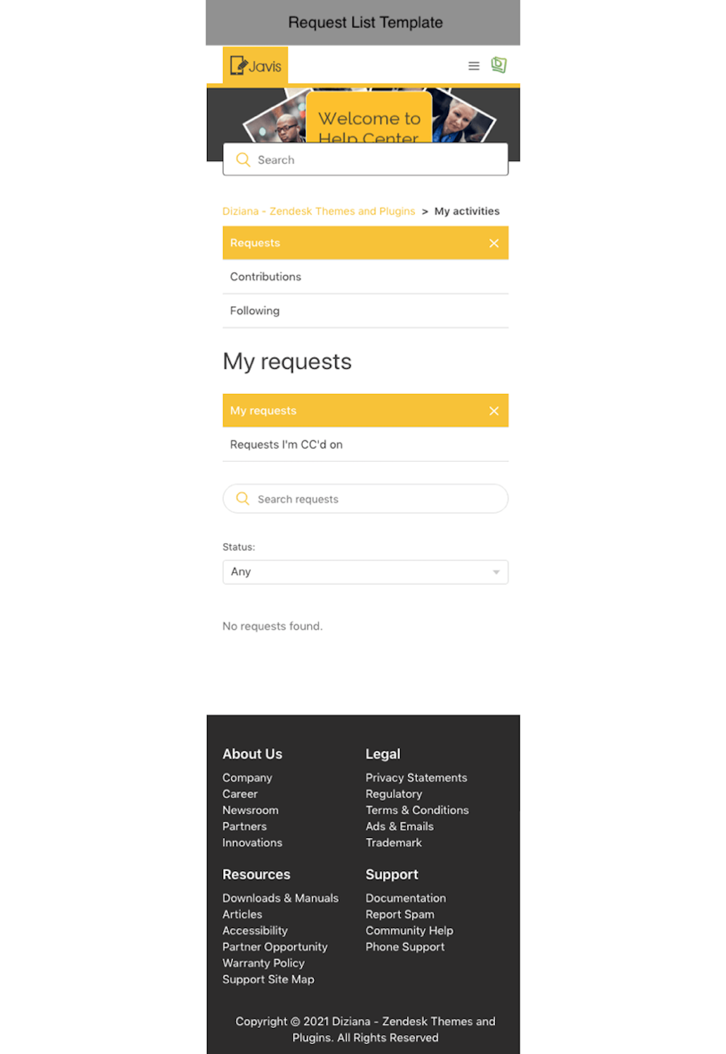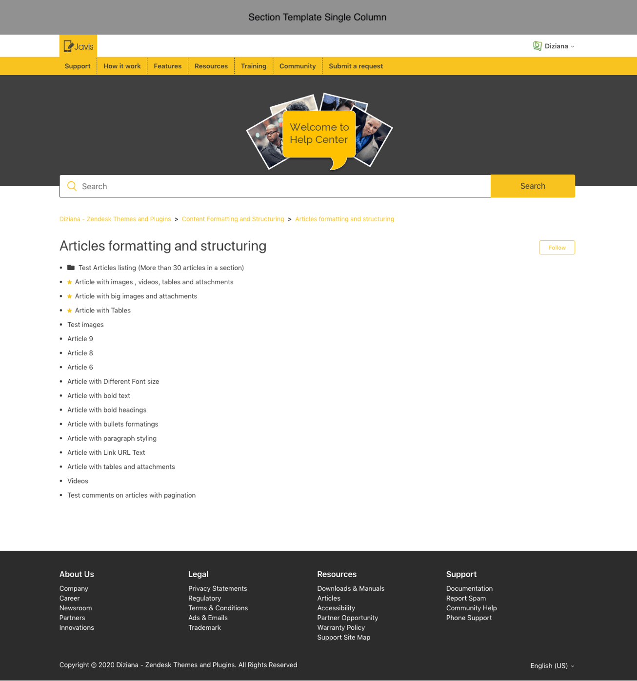 Diziana Javis is a fully responsive Zendesk® Guide Help Center Theme (templates). It can be used by all kinds of organizations -- Technology, Education, tours & travel, Food, Startups, IT, Medical, Construction, Builder, Marketing, Startup, Fashion, Government, NGO, Not-For-Profit - Companies, Business, or Organizations.