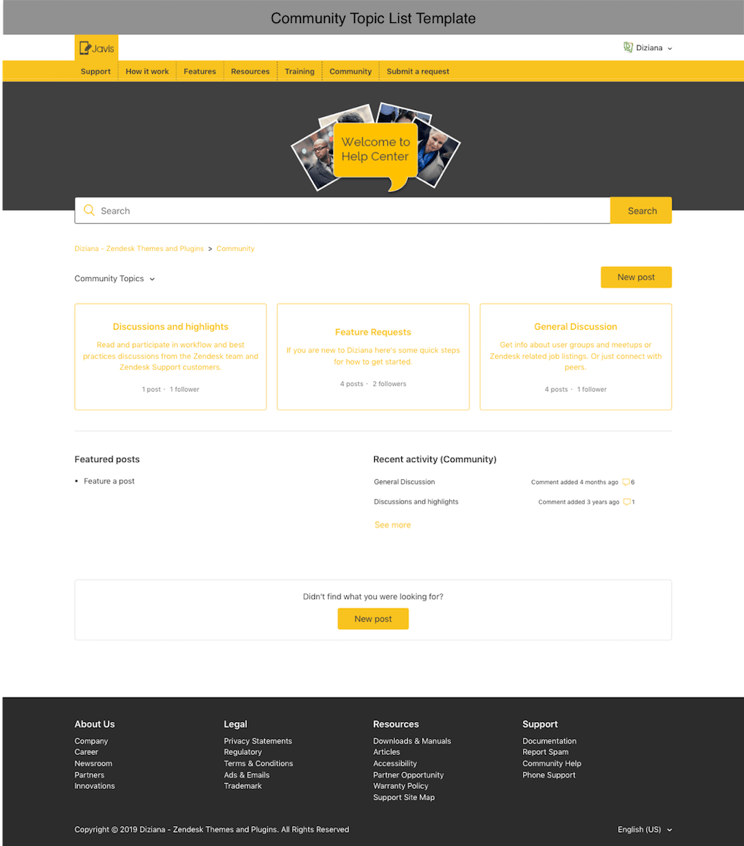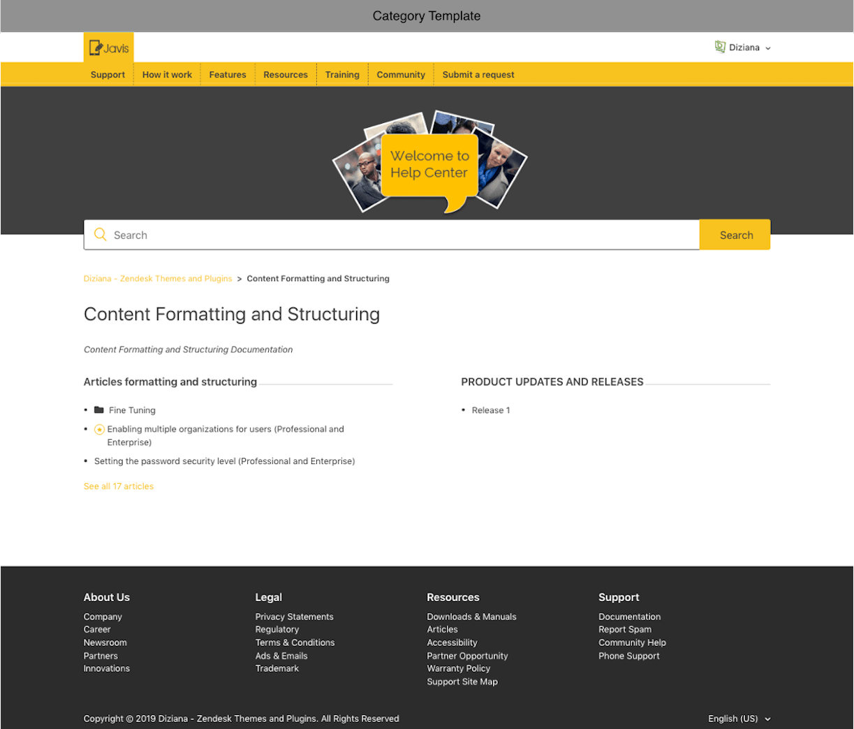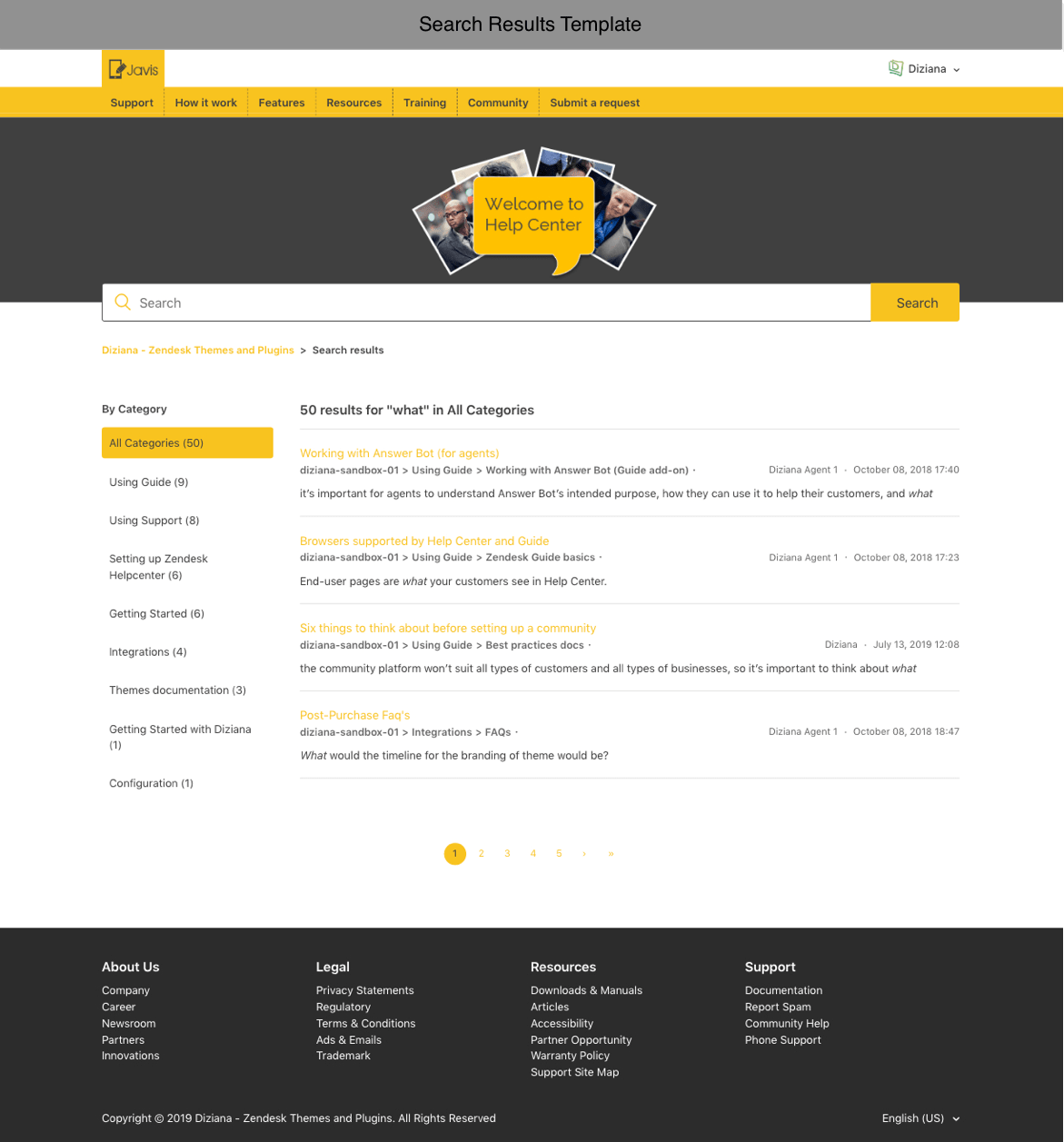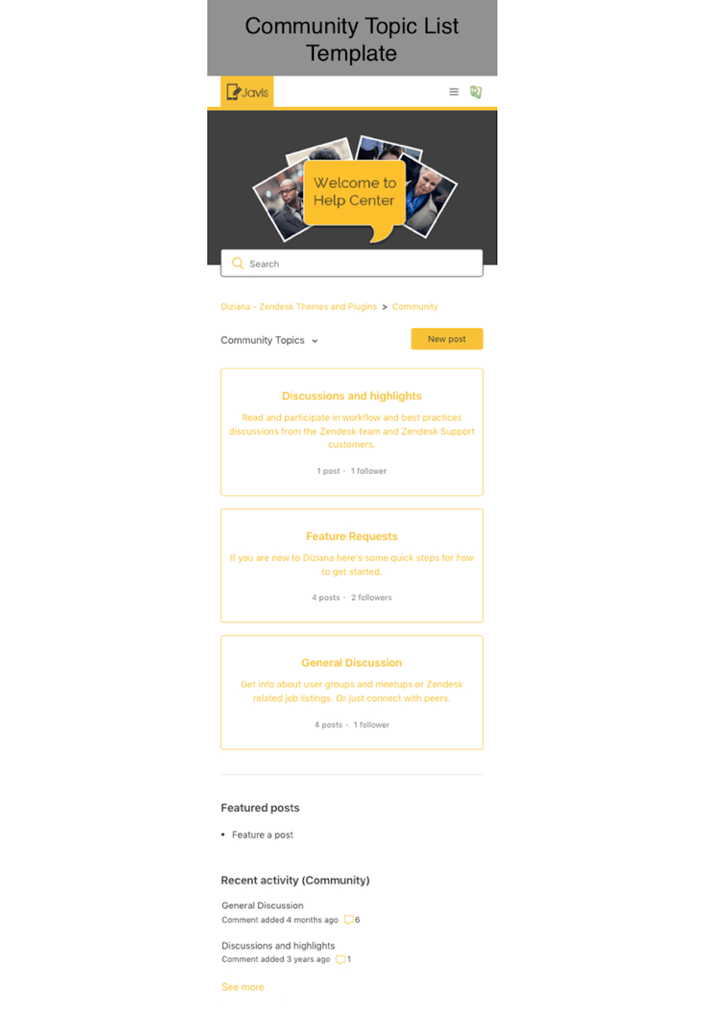 Diziana Javis is a fully responsive Zendesk® Guide Help Center Theme (templates); an elegant one.
