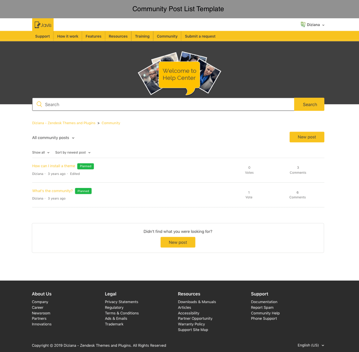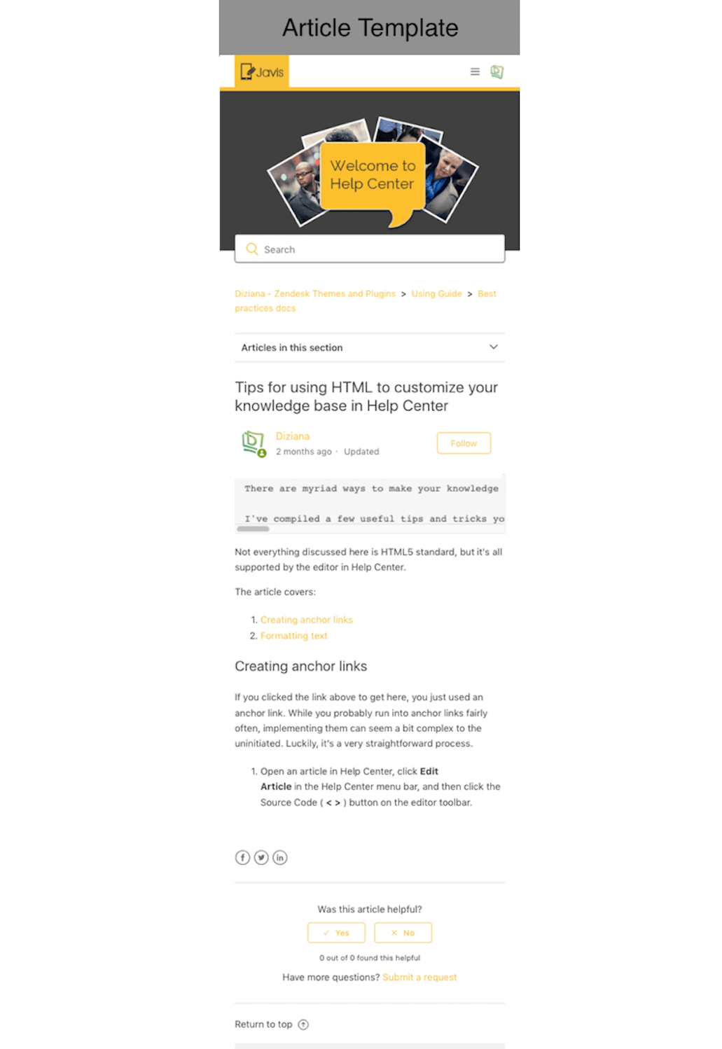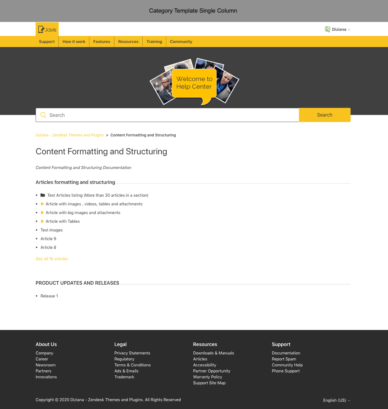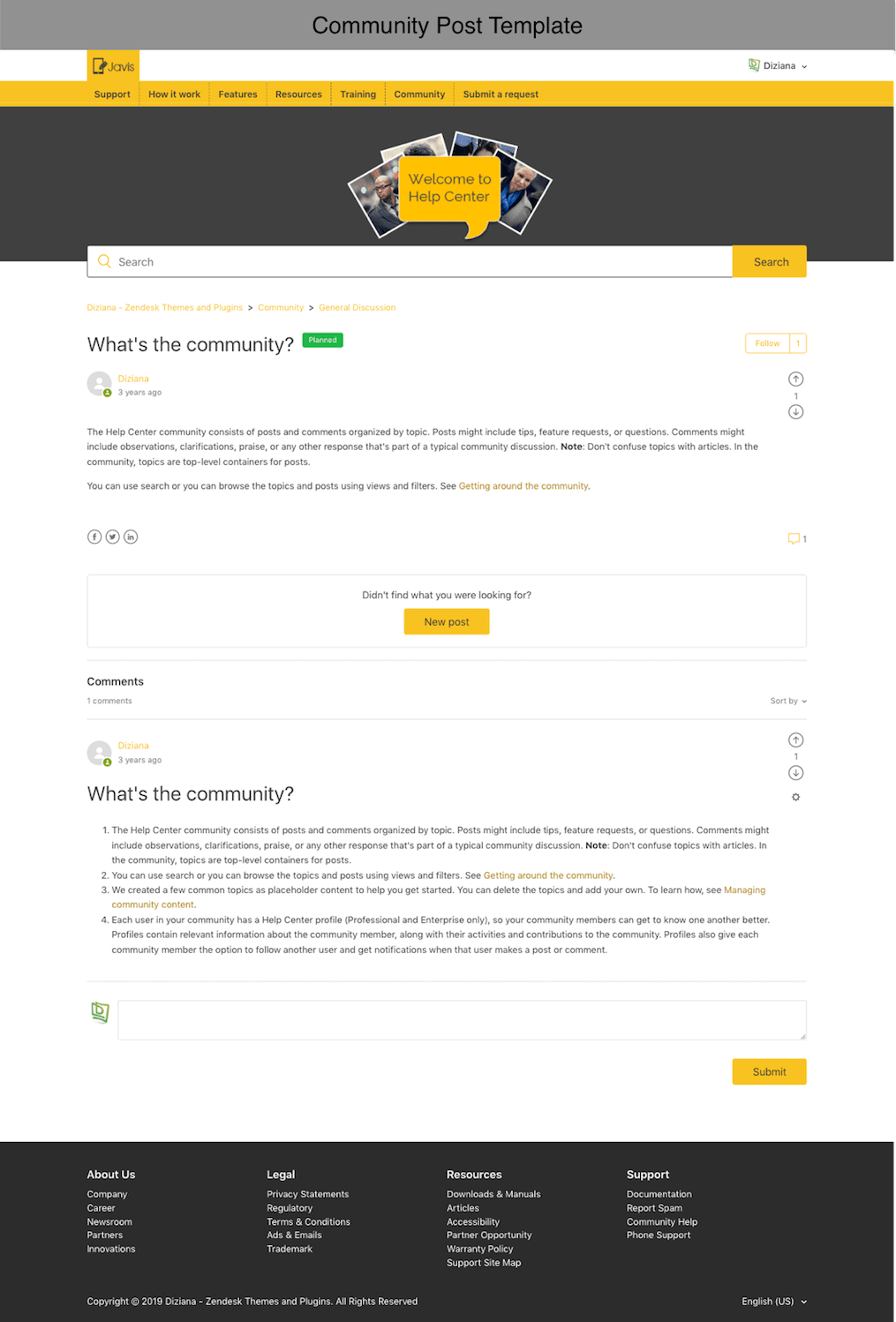 Diziana Javis is a fully responsive Zendesk® Guide Help Center Theme (templates); an elegant one.