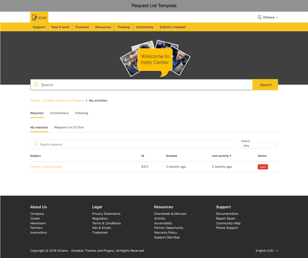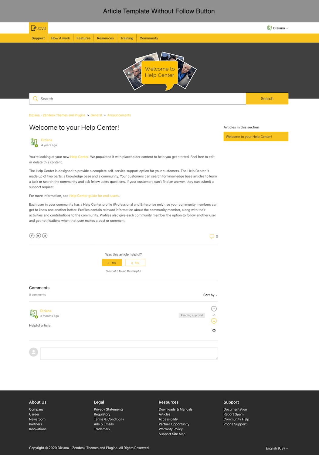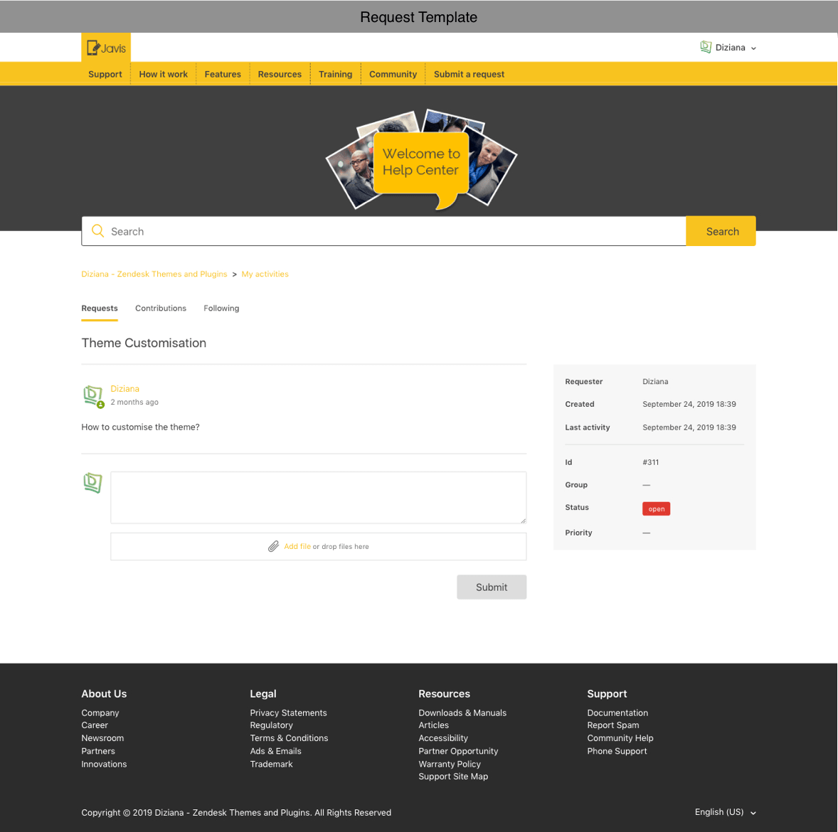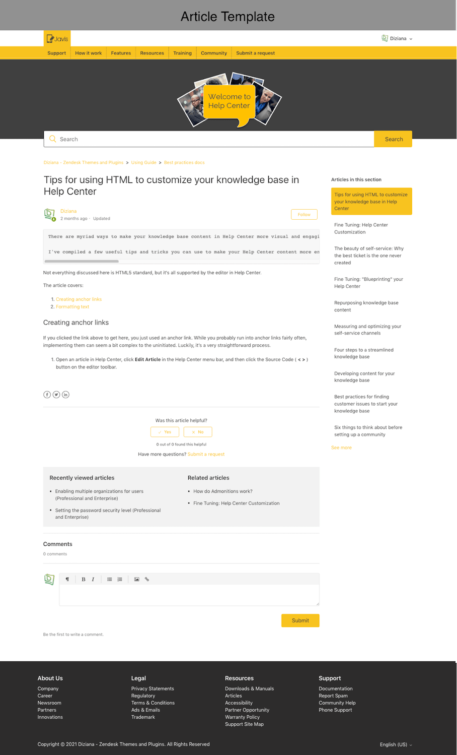 Theme License: Diziana Javis Theme License for One (1) Zendesk Help Center or Brand.