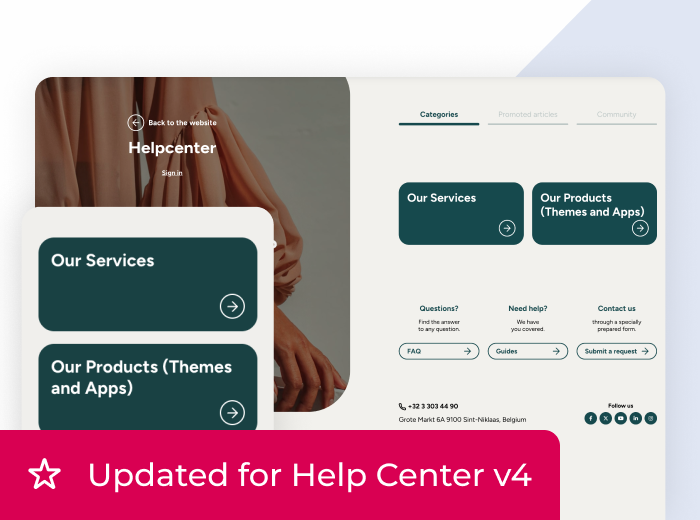 Our themes are updated regularly to support new Zendesk features and capabilities.Have any questions about this theme? Feel free to contact us.