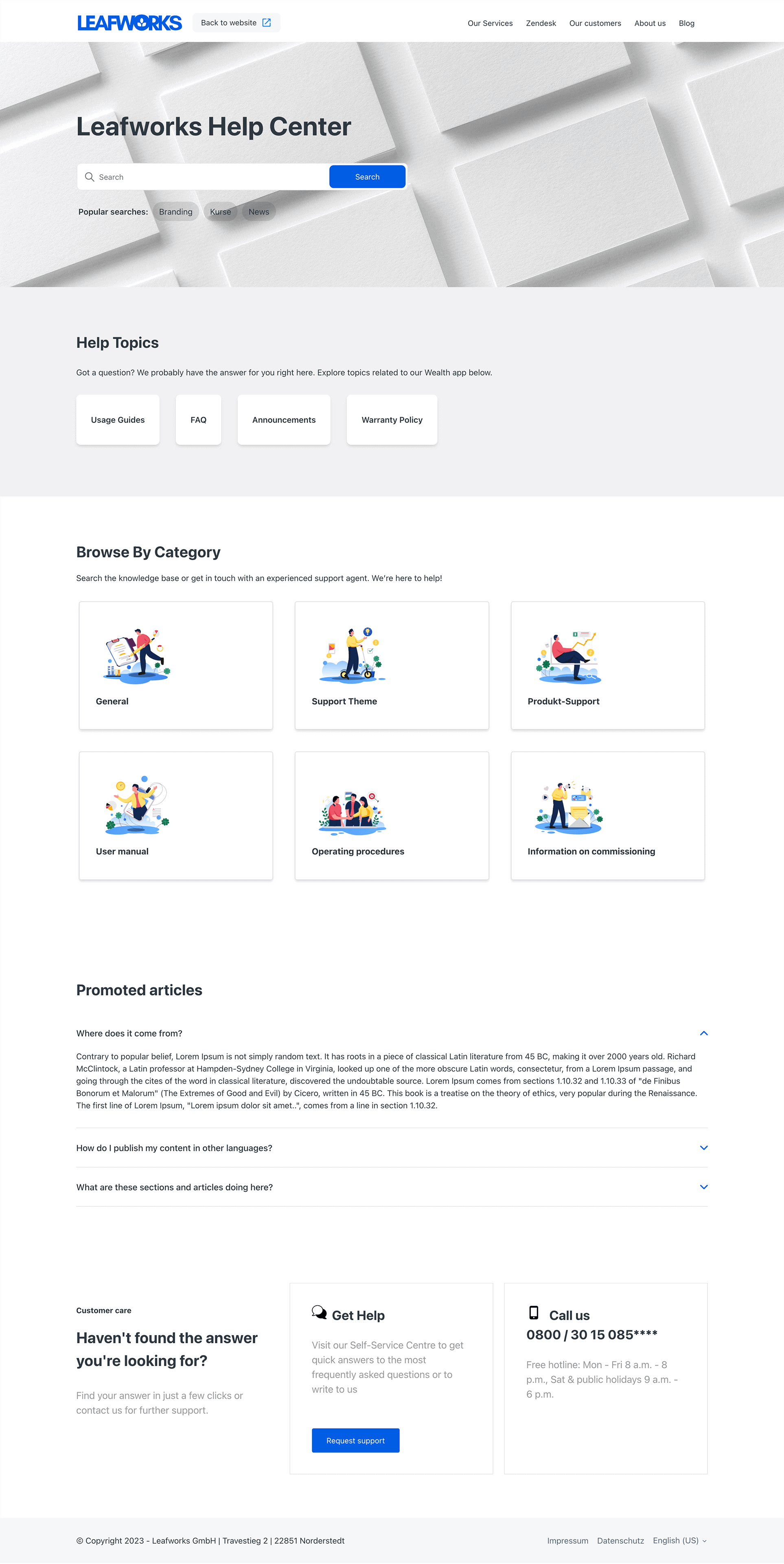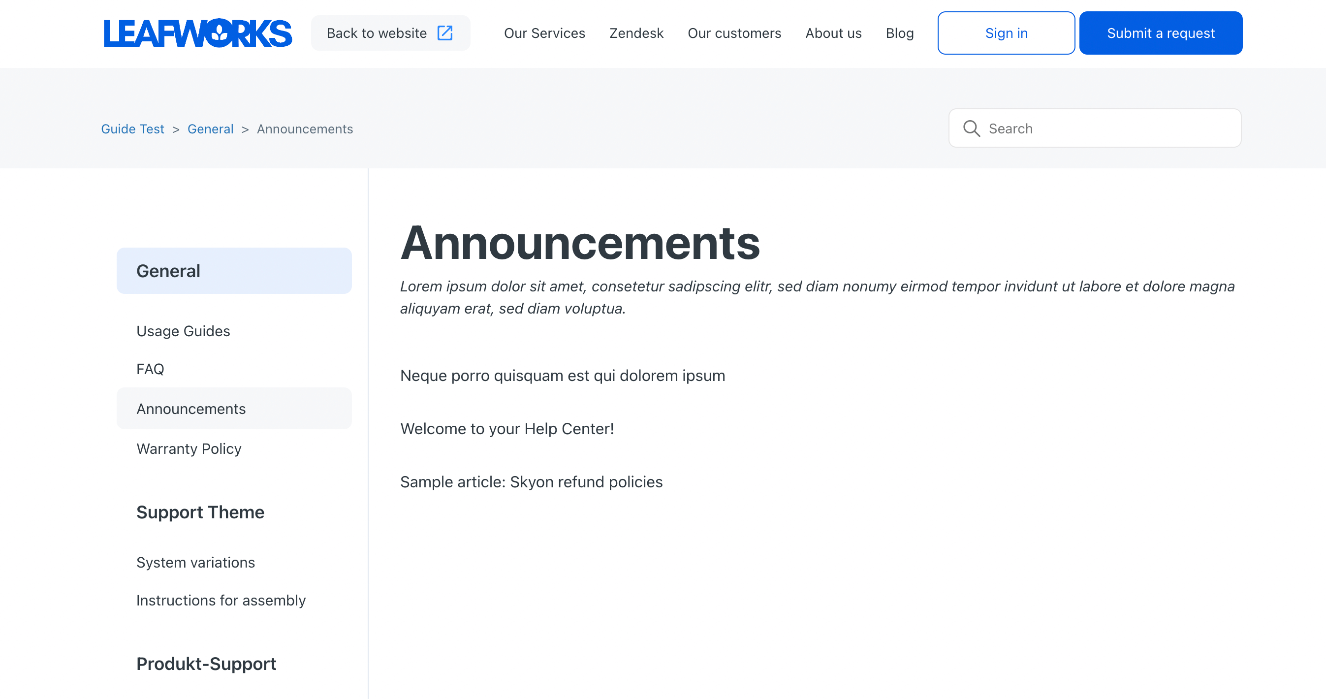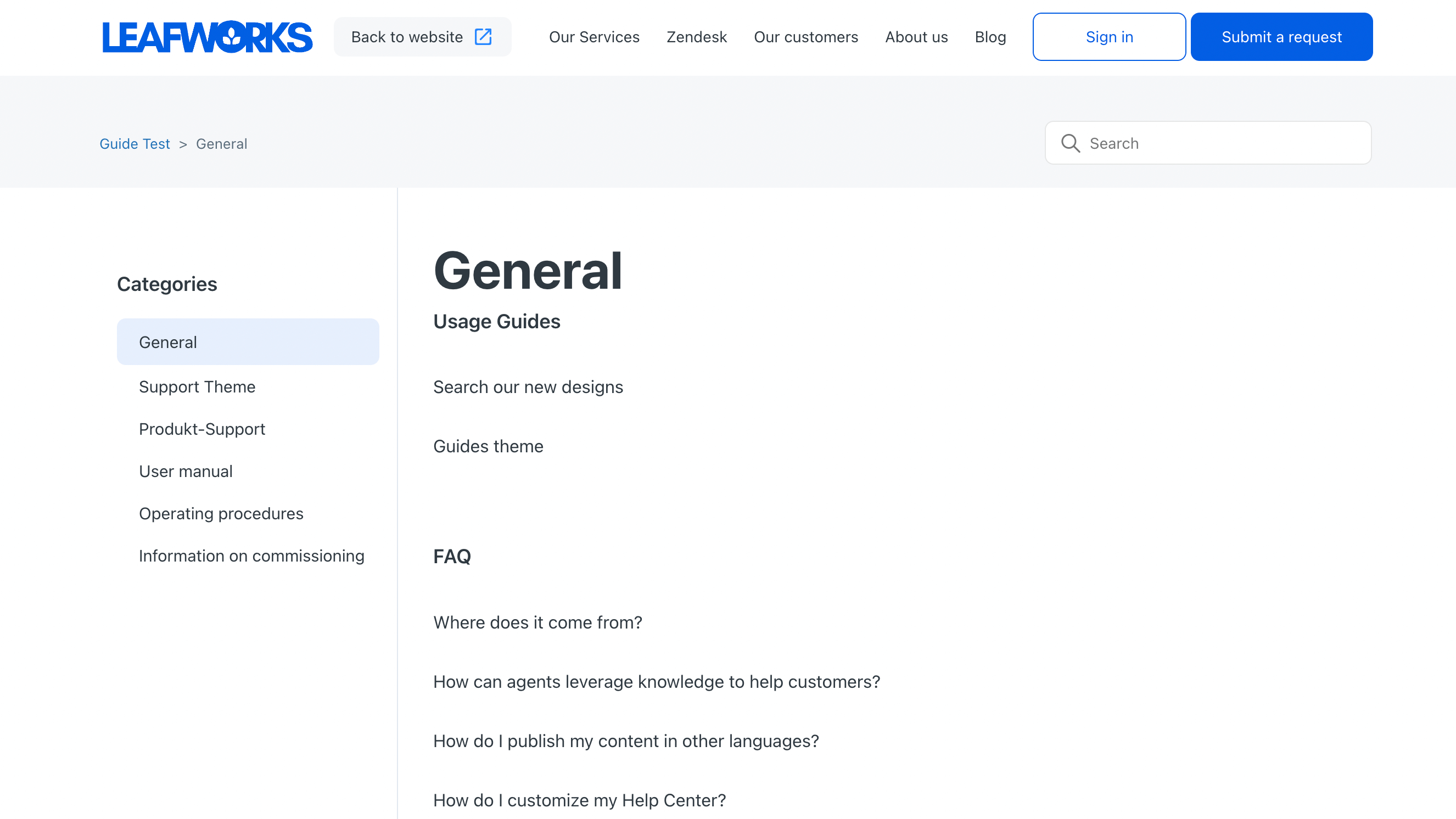Leafworks is an innovative theme that offers a wide range of useful options for your clients. Instead of spending a significant amount of time and money hiring expensive developers to create such a theme, all you need is Leafworks. With just a few simple clicks, you can get a customized theme with a rich structure of categories, sections, and articles on each page. Save on costly development expenses and effortlessly create a professional and feature-rich support center with Leafworks.