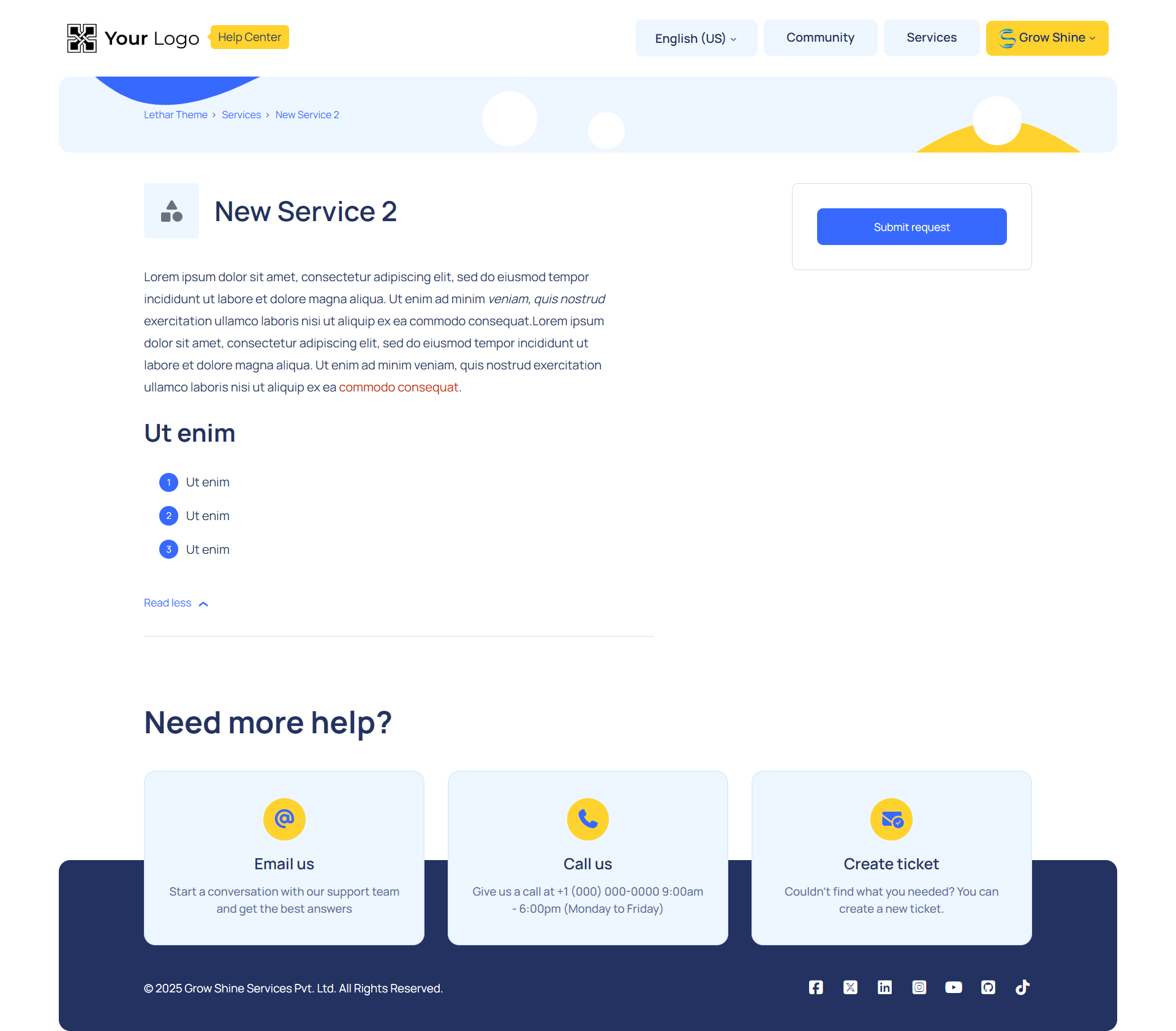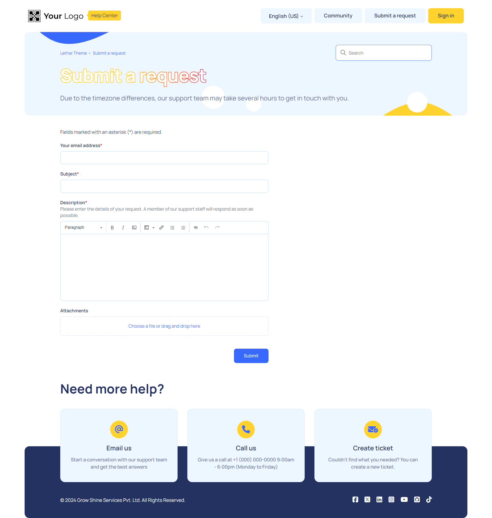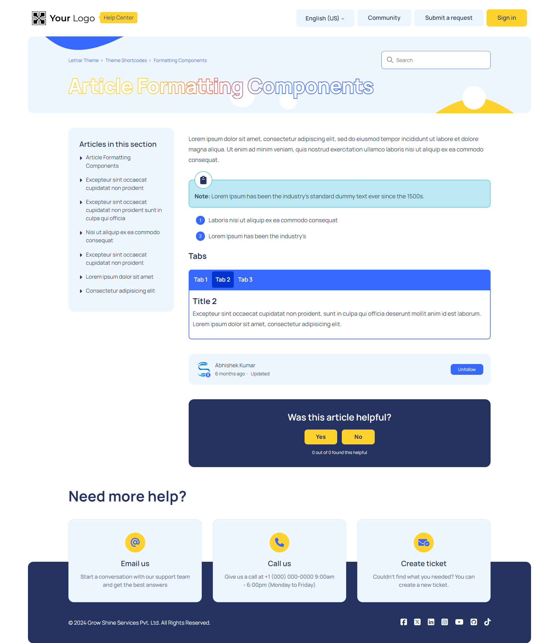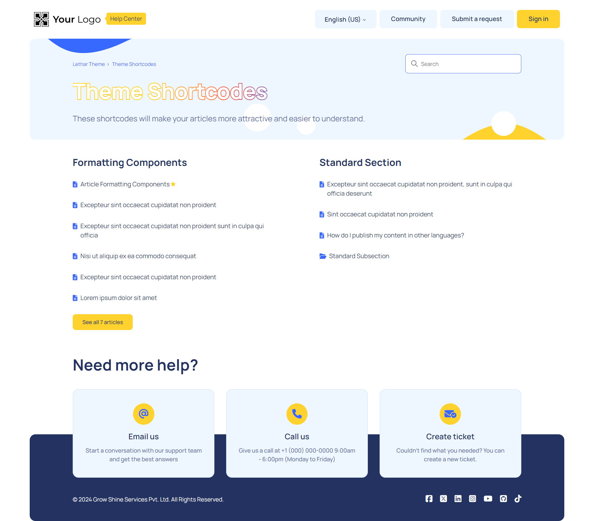 Lethar Zendesk Theme is power-packed with amazing page layouts, styles, and sidebar, apt for showcasing your support center to clients. Our pre-built options allow you to update many things, No coding is required. Built with Zendesk’s Templating API V4 and Generative answers (AI-search).