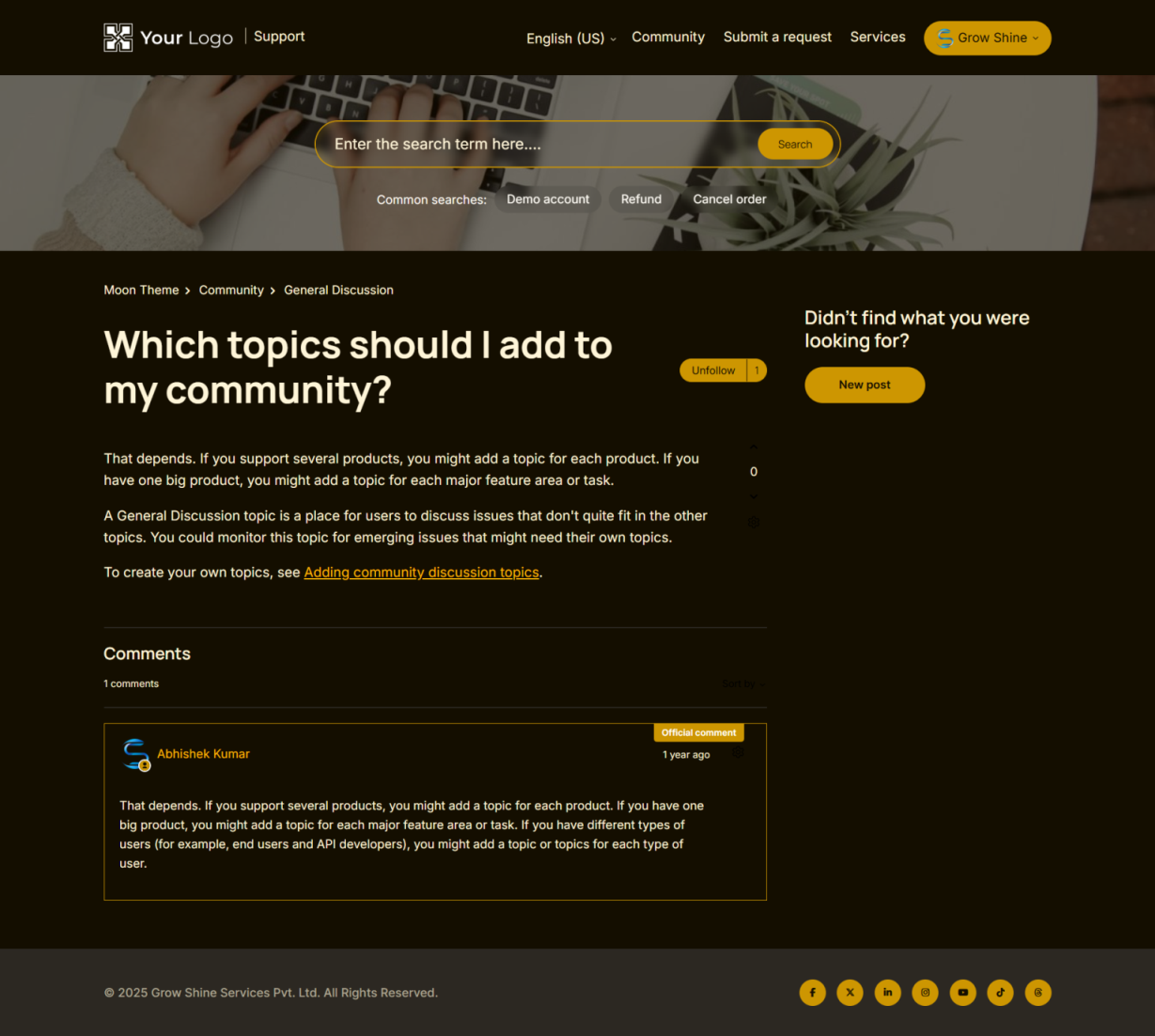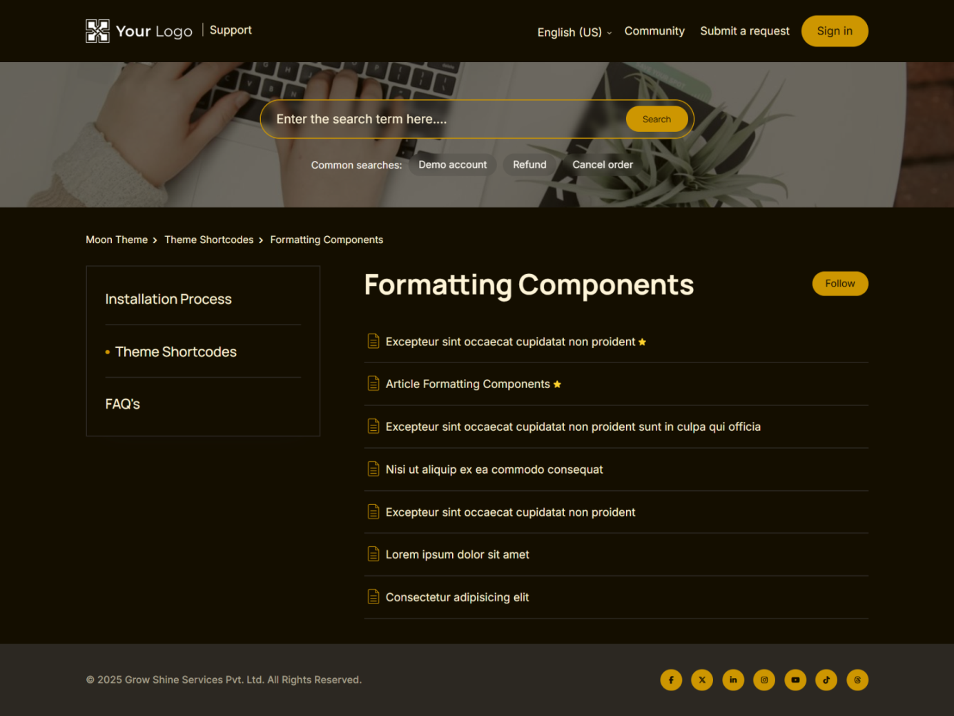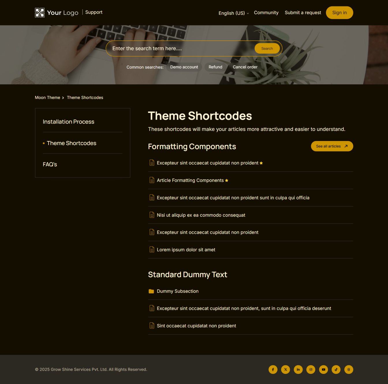 Moon is a dark styled and creative Help Center theme for all agencies that offers a creative impact. Built with Zendesk’s Latest API and AI-search.
