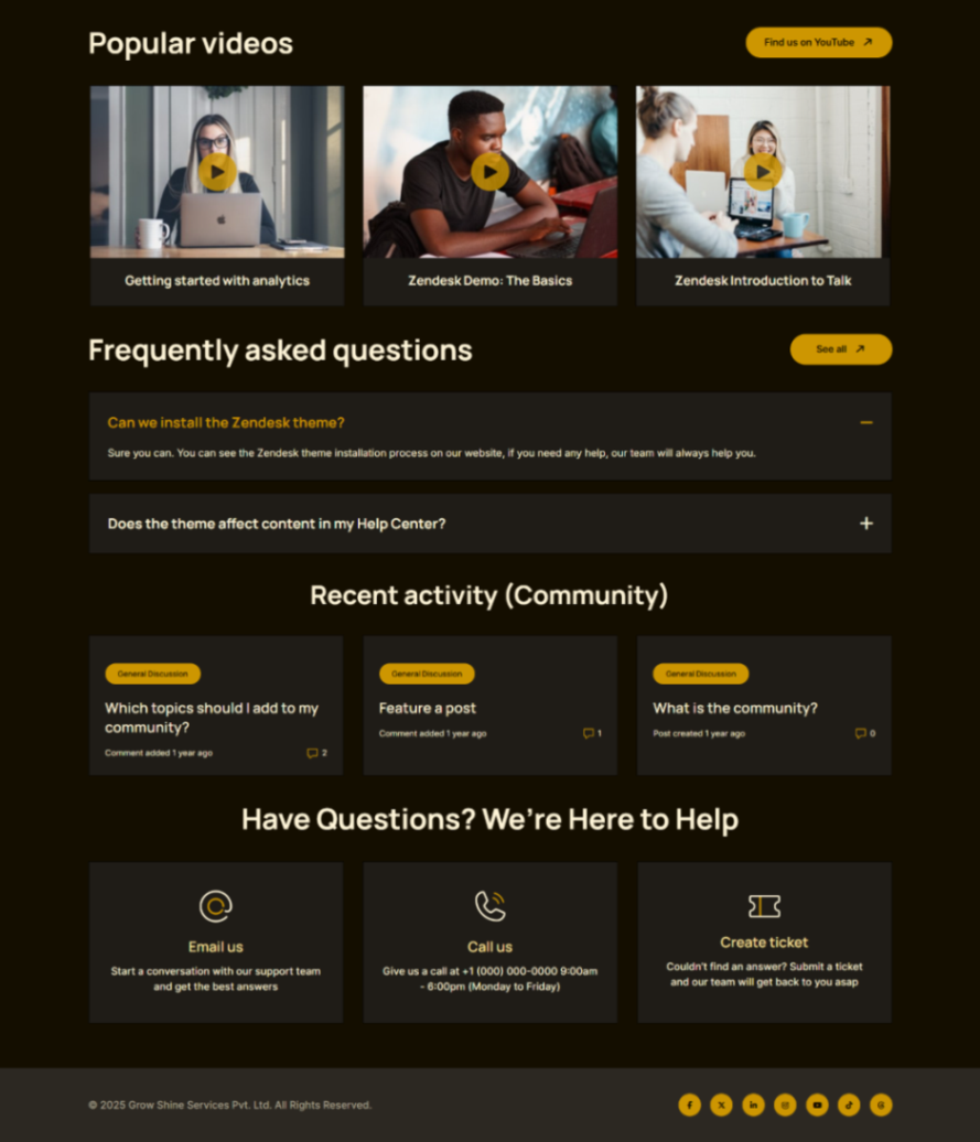 Our Zendesk themes are updated regularly to support new features and capabilities. Have any questions OR any suggestion about our theme? Feel free to email us.