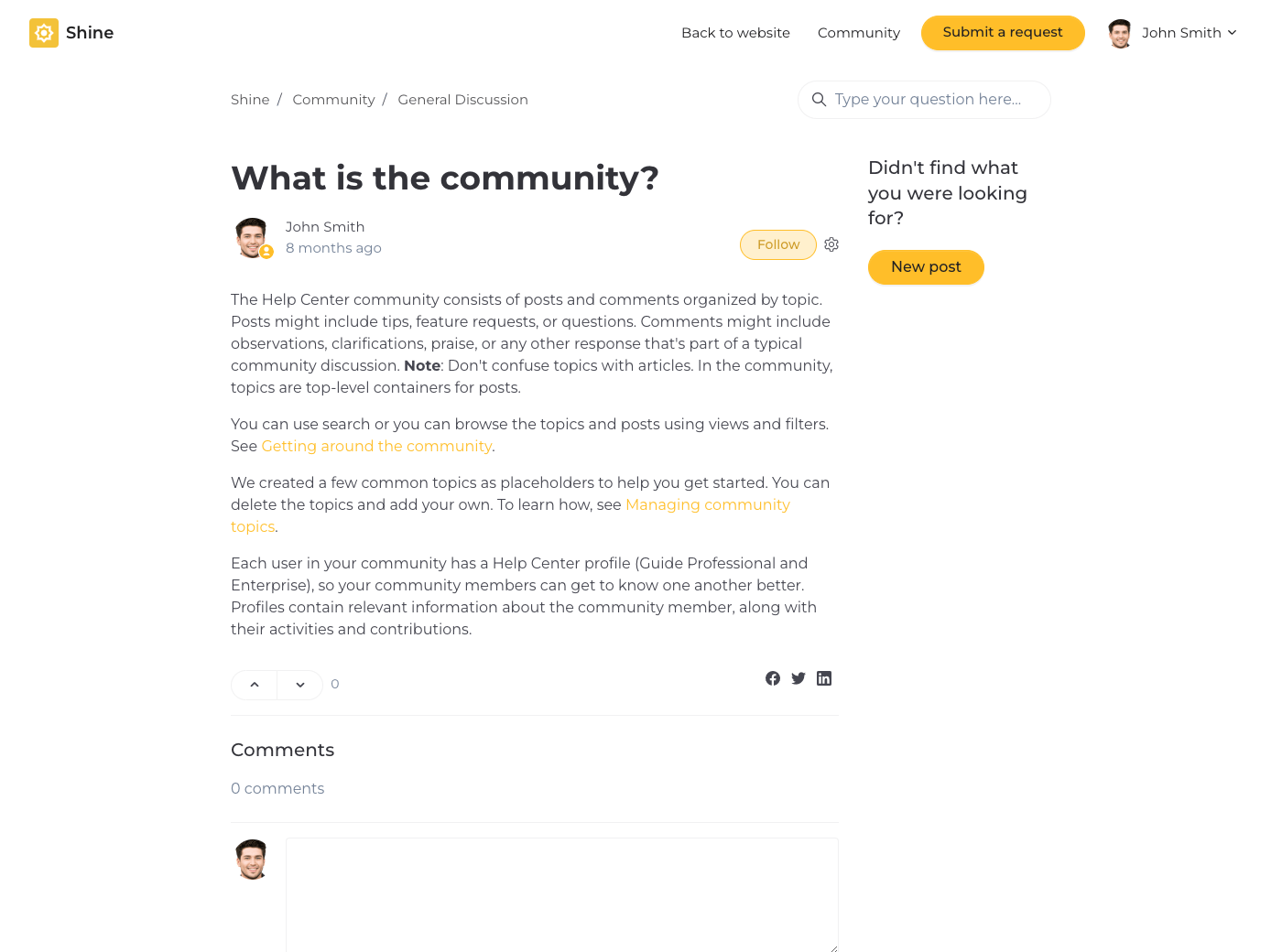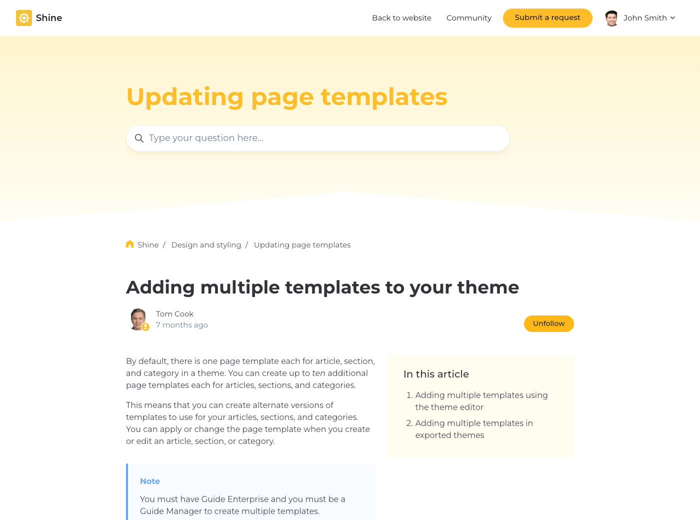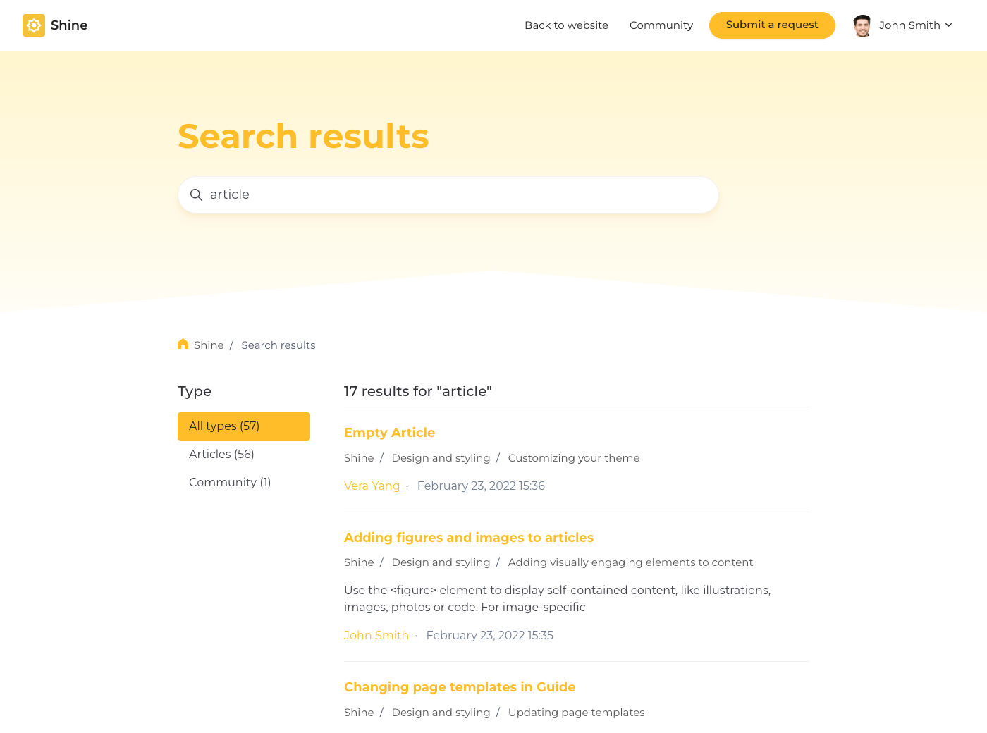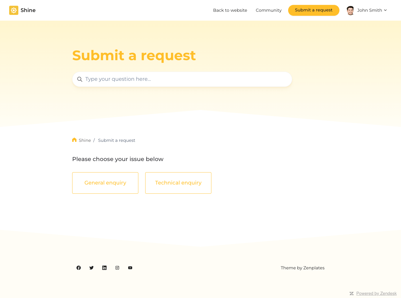 Shine is a beautiful and highly customizable theme for Zendesk Guide. It is designed to serve as a solid foundation on which to build an amazing knowledge base for your customers.