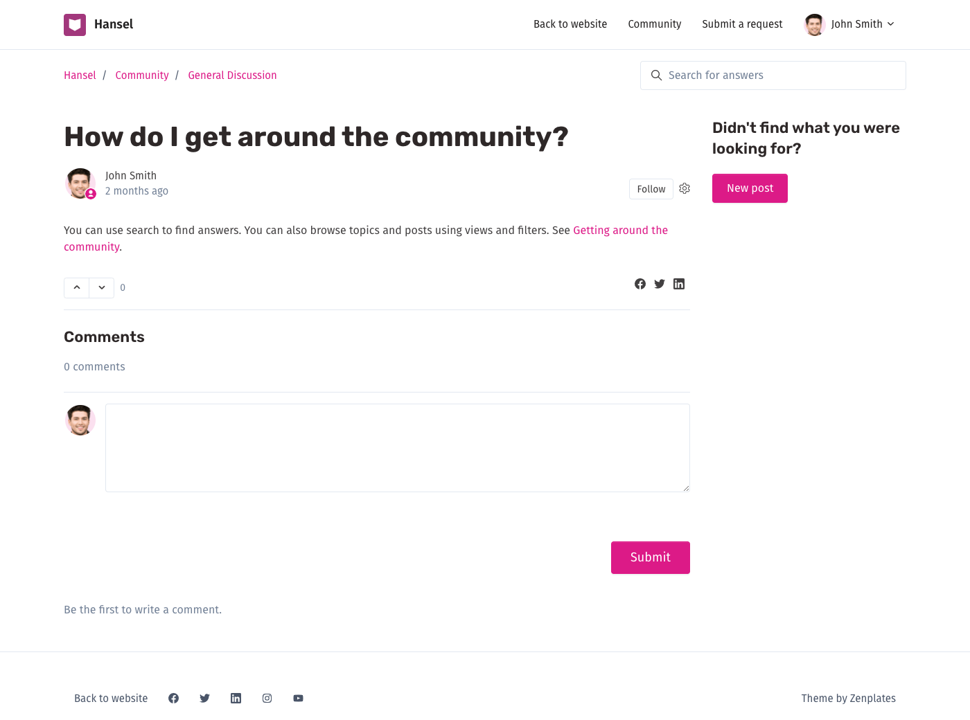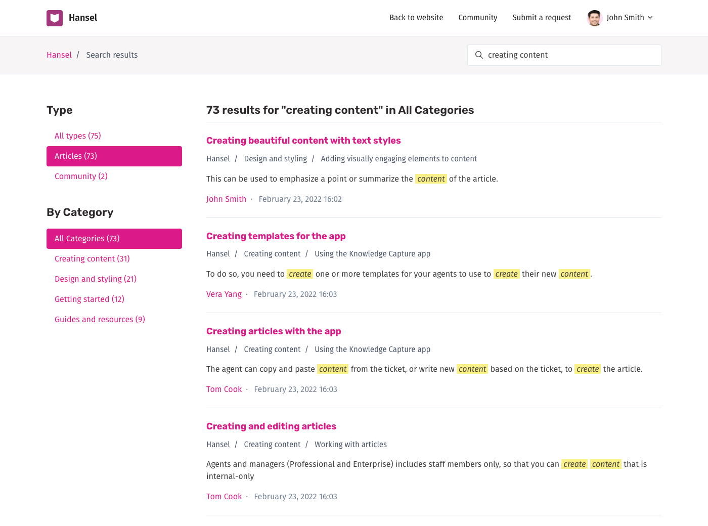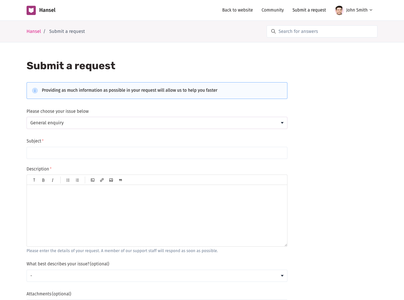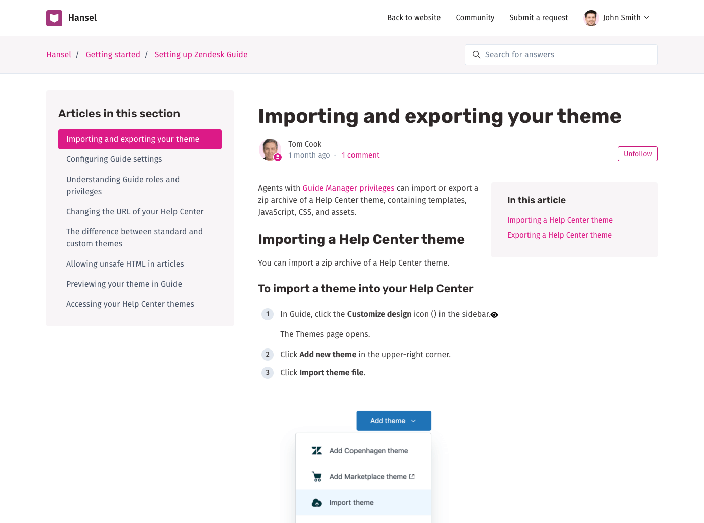 Hansel is a beautiful and highly customizable theme for Zendesk Guide. It is designed to serve as a solid foundation on which to build an amazing knowledge base for your customers.