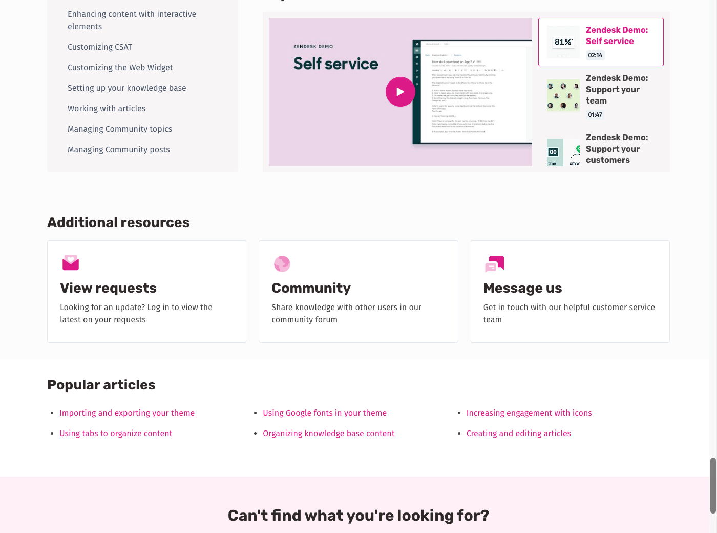 We've pushed theme settings to the absolute limit, giving you the ability to completely change the look-and-feel of your help center to match your company brand guidelines through no-code configuration. Our team has made the tough design decisions so you can focus on what's important: delivering an amazing help center and self-service experience to your customers.