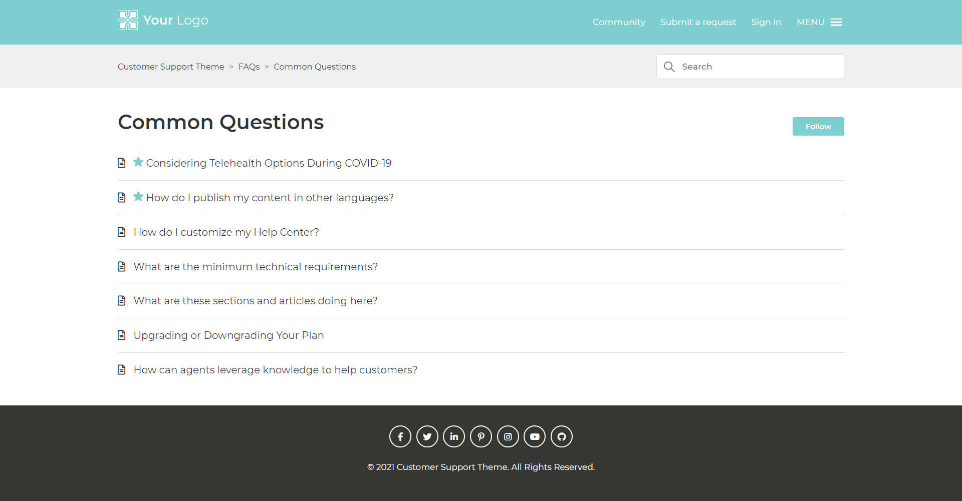 - Homepage category blocks icon (Font icon) - You can only update Six (6) icon in setting option. If your Help Center has more than Six categories then you have to go with the Developer license.